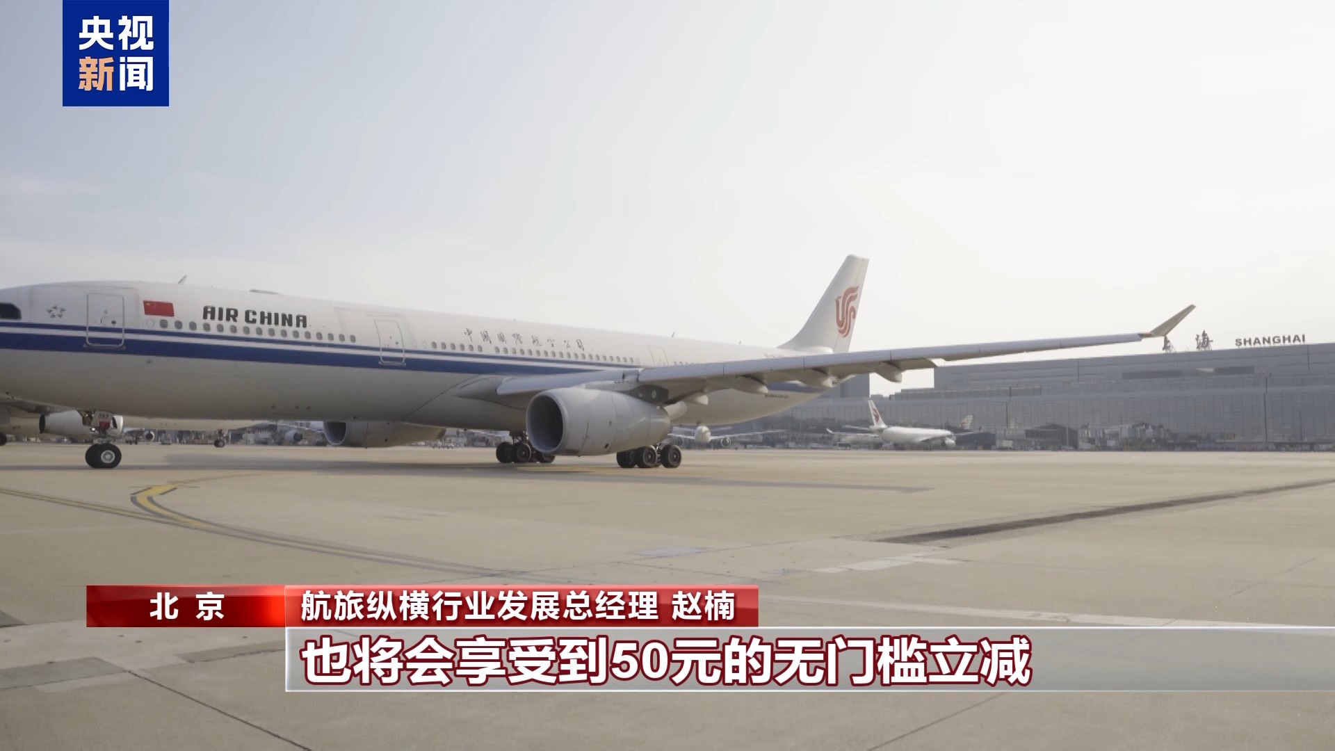 航旅纵横行业发展总经理 赵楠:没有托运行李的旅客,如果购买海南航空的轻松飞,可以立减20到40元票价。第一次坐飞机的旅客,如果购买国航的机票,也将会享受到50元的无门槛立减。