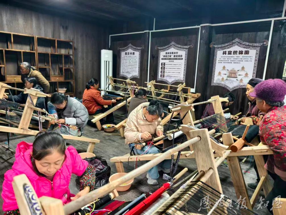 “干完农活、忙完家务,有点空就能织几梭,不用往工坊跑。”周庚香在织机前坐下,系好腰背带,手脚并用操作起来。像她一样,村民粟水英、谢志香、吴春梅等十几户也都把织机安在了家里。“以前冬闲就是晒太阳、拉家常,现在时间都能‘织’成钱。”粟水英笑着说。